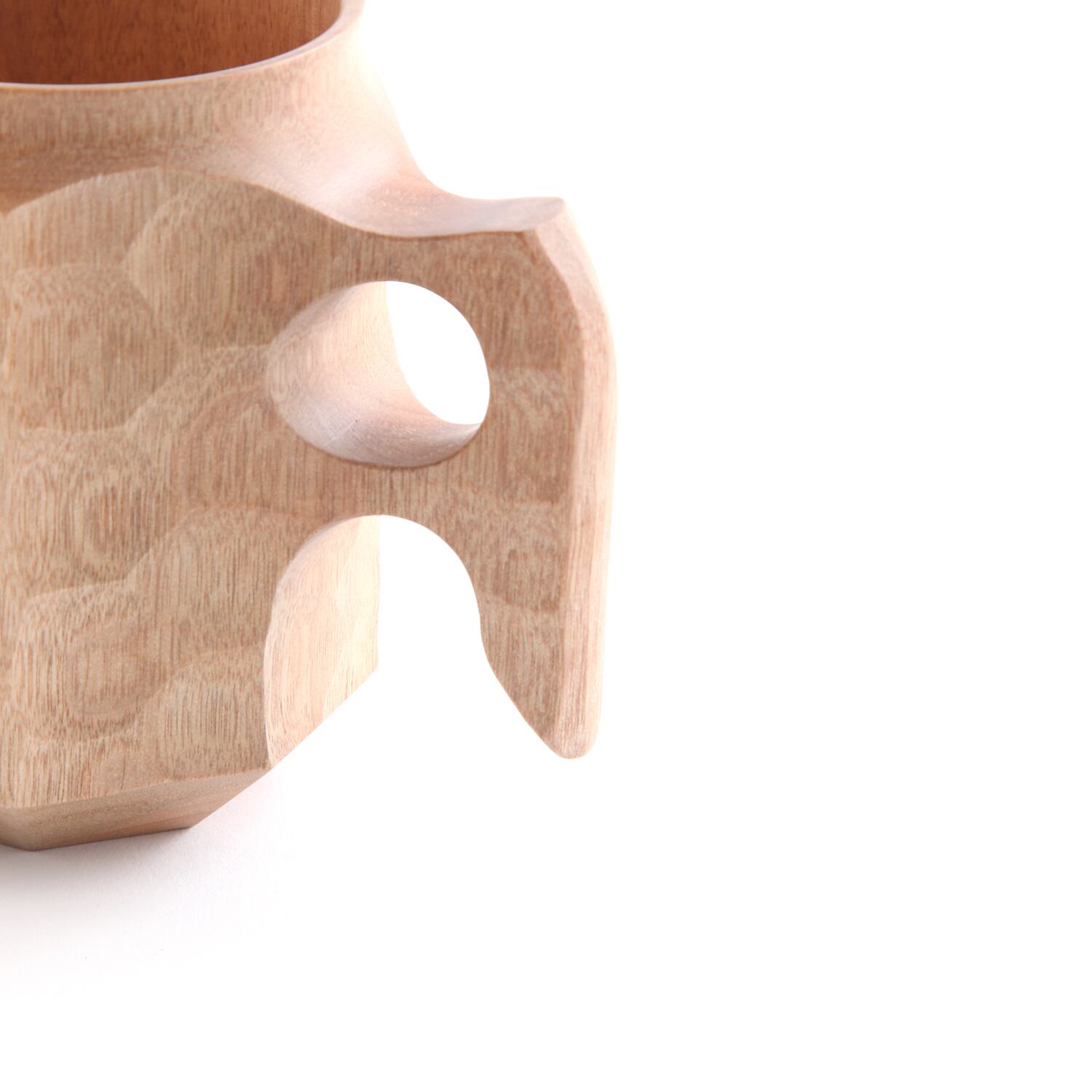 全て作家本人の手作りで、飲み口の薄さと滑らかさ、取っ手の持ちやすさ、表面の特徴的な削り出し、機能性と造形美の両方を兼ね備えた素敵なWood Cupです。容量はすりきり270cc。
