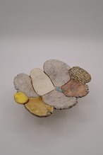 三重県で作陶する中田篤さんの平椀。 釉薬に漆を使用する事によるマットな質感と、独特な形状と柄がアート作品のような趣き。